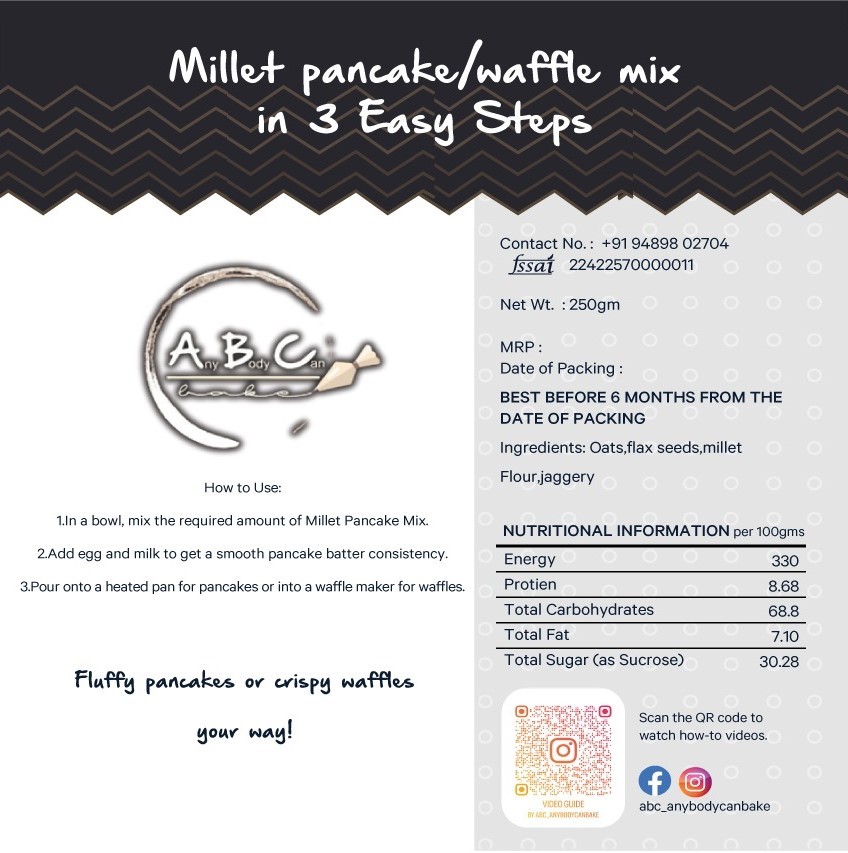 Made with the power of oats, ragi, bajra, and foxtail millet, naturally sweetened with jaggery, our fluffy millet pancakes/Waffle mix are free from refined sugar and refined flour.
